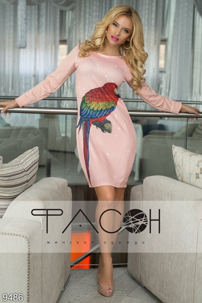 Цвет: нежно-розовый/ принт попугай