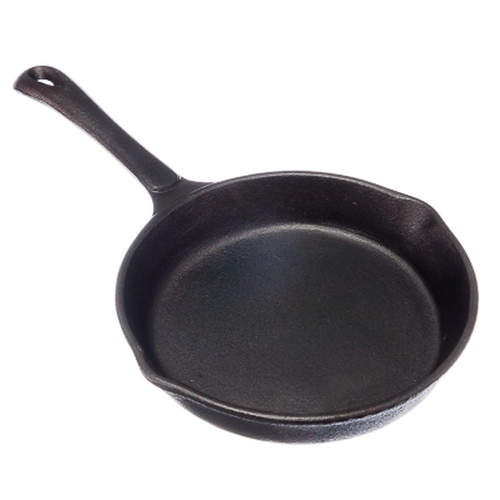 Сковорода диаметром 20 см с двумя сливами, цельночугунная, подходит для использования на всех видах плит, включая индукцию.