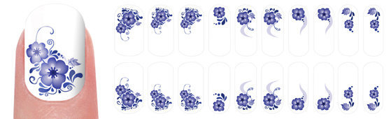 В комплекте 20 наклеекИнструкция по нанесению: 1. Обезжирить ногти с помощью средства Cleaner. 2. Нанести на ногти базовое покрытие, дождаться высыхания. 3. Выбрать подходящее по размеру изображение и вырезать его. 4. Поместить изображение в теплую воду на 15 сек. 5. Аккуратно сдвинуть рисунок с листа на ноготь. 6. Промокнуть рисунок салфеткой и расправить.7. После полного высыхания, нанести защитное покрытие, акрил или гель. Для удаления использовать жидкость для снятия лака.