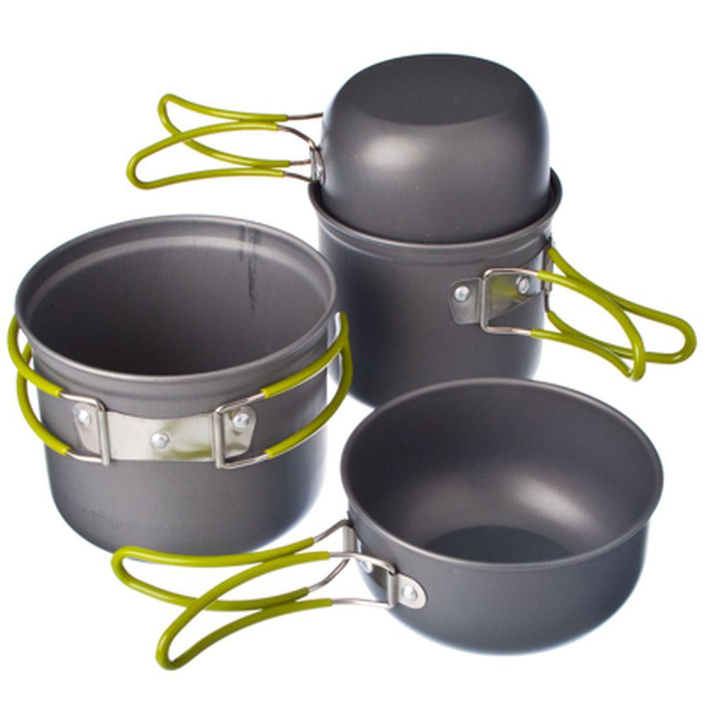 Набор для посуды состоит из четырех предметов, позволяющих с легкостью приготовить обед в походных условиях. Предметы удобно складываются друг в друга.