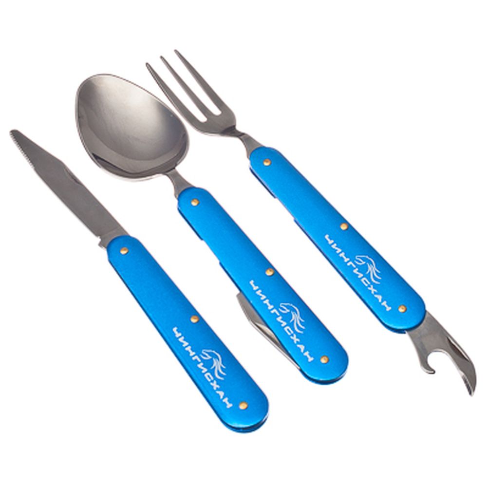 Набор станет неотъемлемым аксессуаром любого туриста. Предметы в наборе обладают основным и дополнительным функционалом. Вилку можно использовать как консервный нож, а ложку как открывалку.