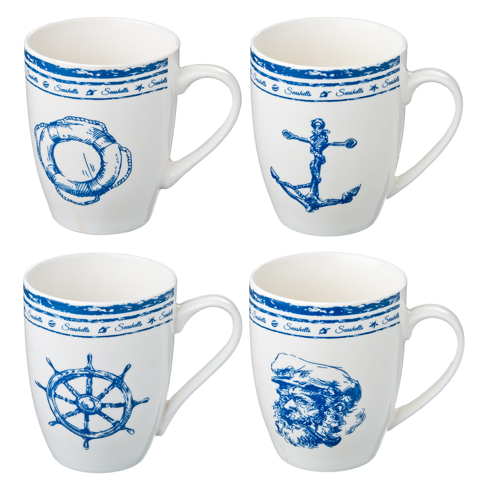 Фарфоровая кружка универсального объема в подарочной упаковке; в ассортименте -4 дизайна.