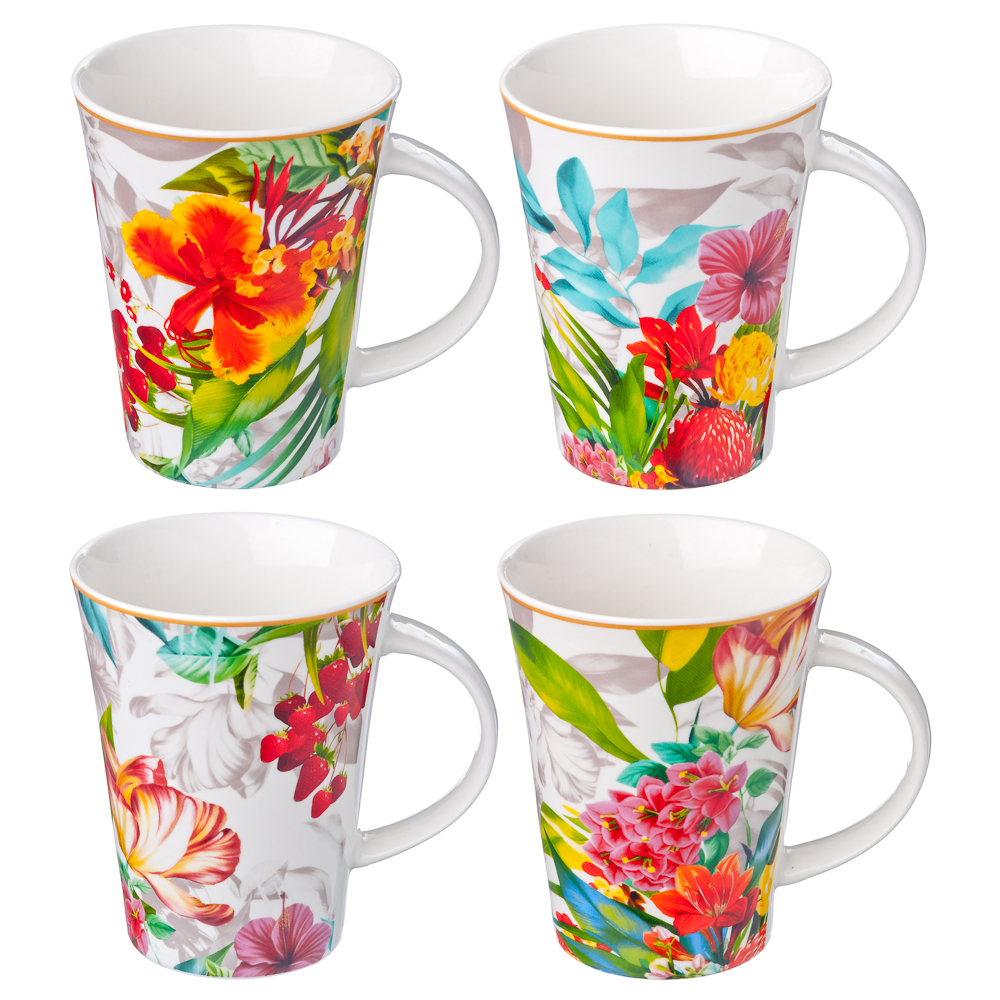 Фарфоровая кружка универсального объема в подарочной упаковке; в ассортименте -4 дизайна.