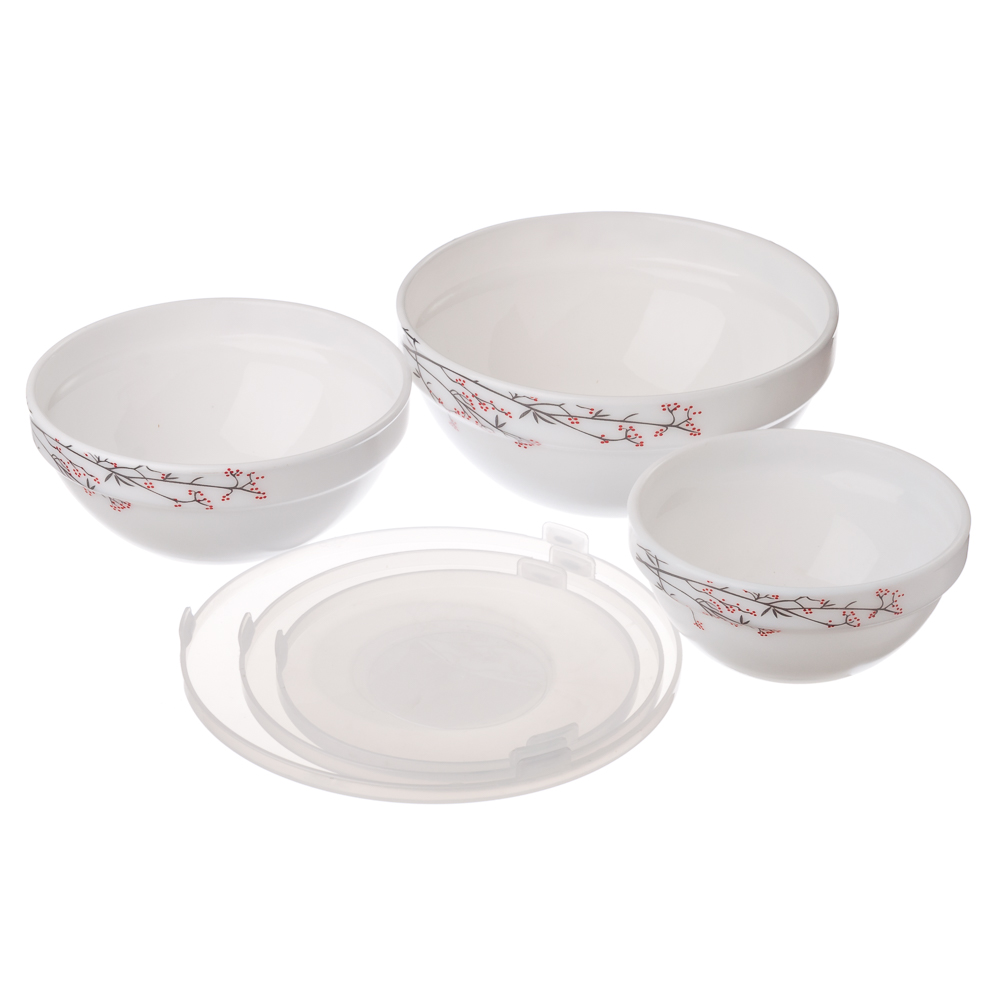В комплекте - три салатника с пластиковыми крышками