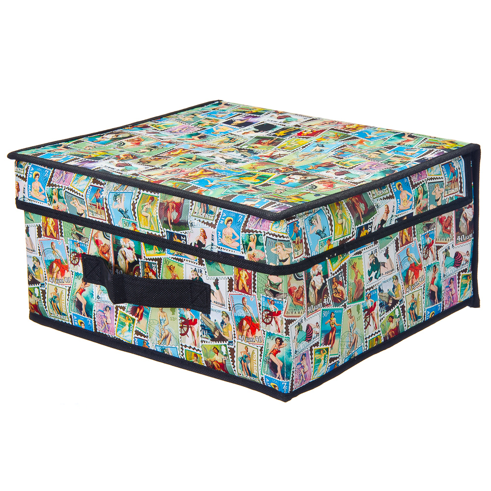 Удобный короб с крышкой для хранения вещей, коллекция "Марки". Влагостойкий. Короб можно разместить как в шкафу, так и на открытой полке.