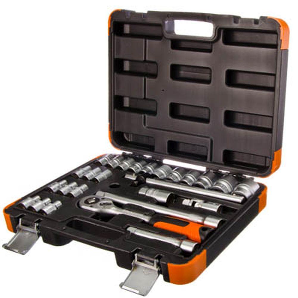 Набор профессионального инструмента изготовлен из хром-ванадиевой стали. В нем представлены самые популярные размеры деталей для крепежных соединений. Головки из данного набора имеют стандартную высоту и рабочий профиль , благодаря чему обеспечивается более надежный контакт с крепежом по сравнению с обычными шестигранными головками. Также в данном слесарно-монтажном наборе представлен широкий диапазон различных воротков, удлинителей для более удобной эксплуатации головок. Данный комплект представляет собой универсальный набор средств для работы с резьбовыми крепежными частями.