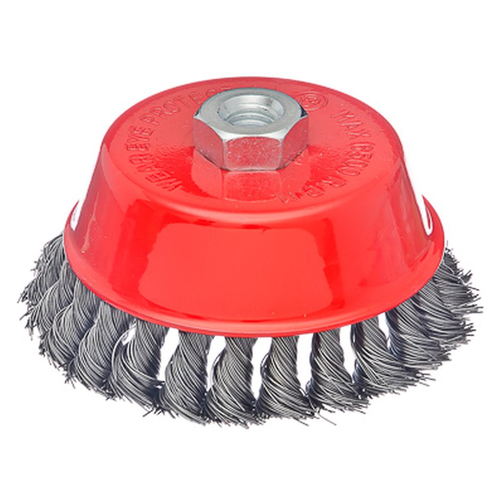Изготовлена из стальной крученой проволоки. Такая щетка имеет высокую износостойкость и применяется при грубых зачистных работах по металлическим поверхностям, удалении окалины, ржавчины и заусенцев, сглаживании сварных швов.