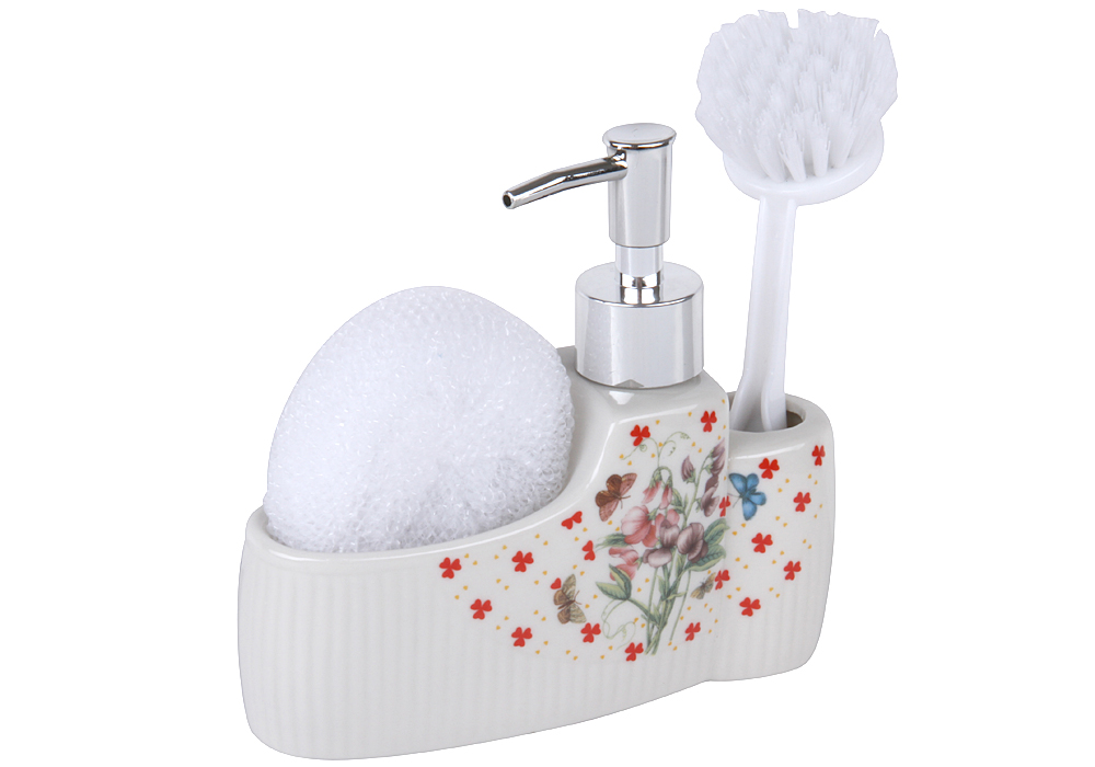 RCE-335011 Дозатор для моющего средства с щеткой и спонжем. Керамика, пластик, обьем 250мл
