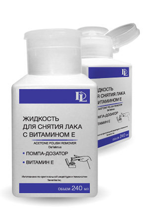 В состав жидкости входит глицерин, который снижает агрессивное воздействие растворителя на ногтевую пластину и кутикулу, а содержащаяся в жидкости парфюмерная композиция нейтрализует неприятный запах. Жидкость одновременно снимает лак и ухаживает за ногтями.Флакон оснащён специальной помпой-дозатором, которая позволяет значительно сэкономить количество расходуемой жидкости и упростить работу мастеру.