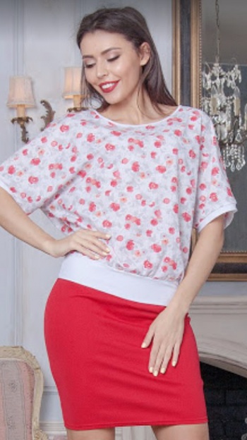 100% хлопок Блуза свободного силуэта из хлопка на поясе со спущенной линией плеча и глубокой горловиной.Длина изделия от 60 см до 66 см, в зависимости от размера.