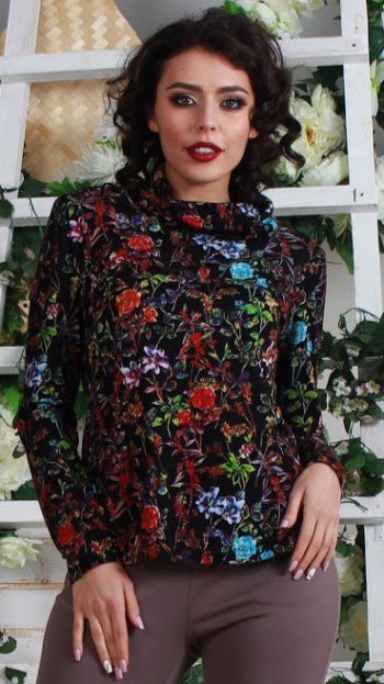 30%ш20%виск50%п/э Блуза из полушерстяноготрикотажного полотна прямого силуэта с небольшими разрезами по бокам, рукав втачной, длинный,воротник-хомут. Длина изделия от 59 см до 62 см, в зависимости от размера. Идеальный выбор для повседневной носки, и по особому случаю. Эффектная модель подчеркивает лёгкость, женственность и романтичность своей обладательницы!