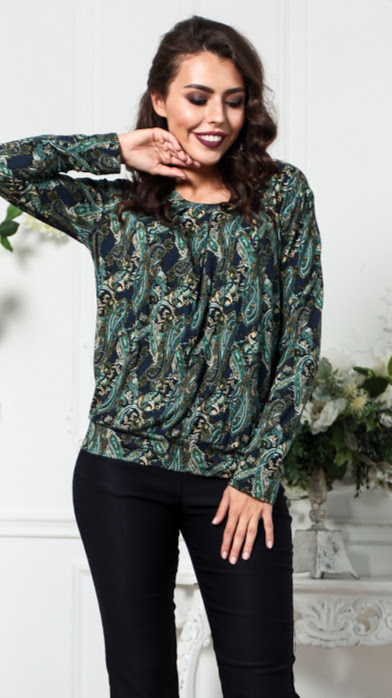 95% виск 5%лайкраБлуза прямого силуэта из вискозного трикотажного полотна на поясе . Рукав прямой,длинный, по горловине заложены мягкие складки.Длина изделия от 60 см до 66 см, в зависимости от размера.