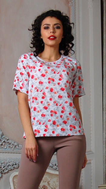 Хлопок 100% Блуза прямого силуэта из хлопка с нагрудной вытачкой.Рукав втачной, до локтя.Горловина окантована. По низу рукава и низу боковых швов выполнены разрезы.Длина изделия от 60 см до 66 см, в зависимости от размера.