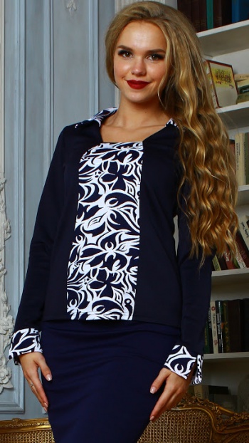50%виск50%п/э Комбинированная блуза из трикотажного полотна с эластаном полуприлегающего силуэта.Рукав втачной на манжете.Вставка переда, воротник и манжет выполнены из отделочной ткани. Длина изделия от 59 см до 64 см, в зависимости от размера. Блуза с контрастным цветочным принтом дарит ощущение легкости и беззаботности! Модель создают зрительную иллюзию стройности.