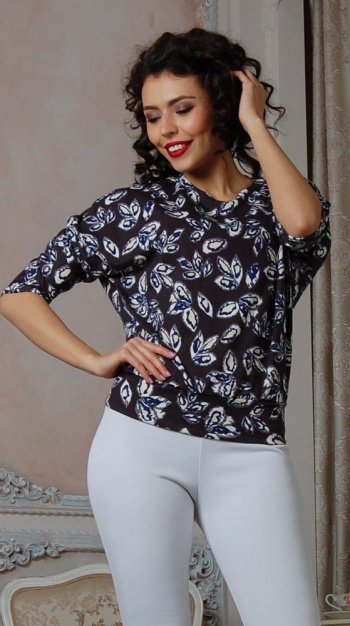 30%ш20%виск50%п/э Блуза на поясе из плотного джерси, рукав цельнокроенный, 3/4. Длина изделия от 57 см до 61 см, в зависимости от размера.